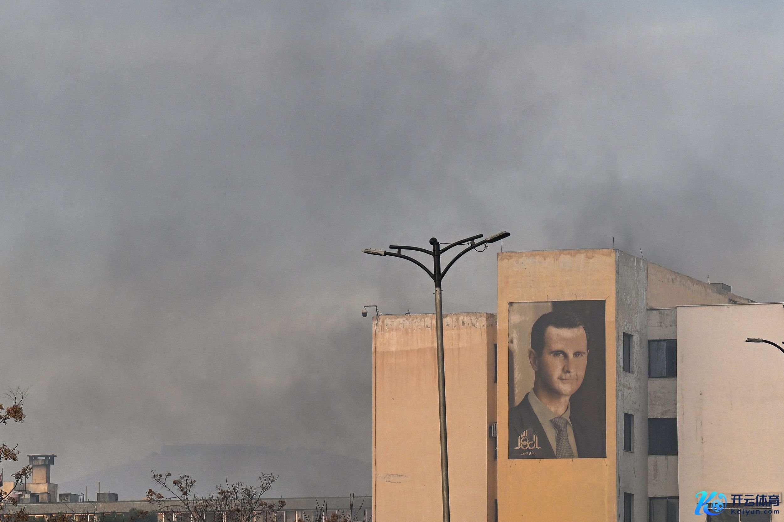 当地技术2024年12月8日,叙利亚大马士革,在一栋贴有·阿萨德肖像的建筑隔壁,浓烟四起(图/视觉中国)