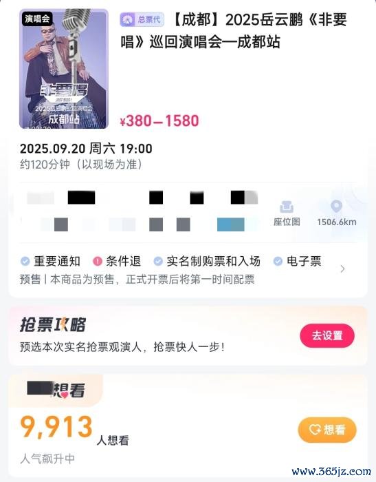 舍弃发稿,岳云鹏“非要唱”成都站场次7月30日开票前9913个东说念主符号“思看”。图源票务平台