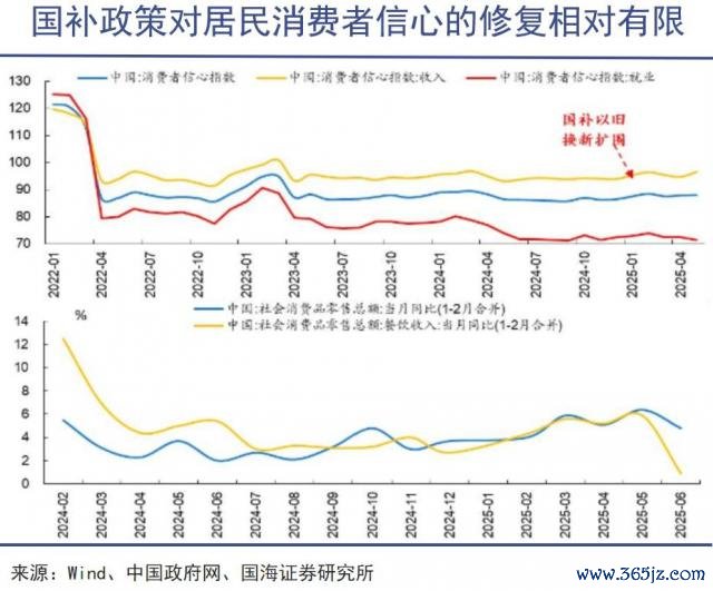 数据自满,2025Q1 的消费者信心指数平均值为 98.70,低于 2024 年同时水平,标明政策的刺激效应正在狂妄。到了 Q2,消费者信心指数略有回升,达到 99.50,但仍远低于政策践诺前的峰值。