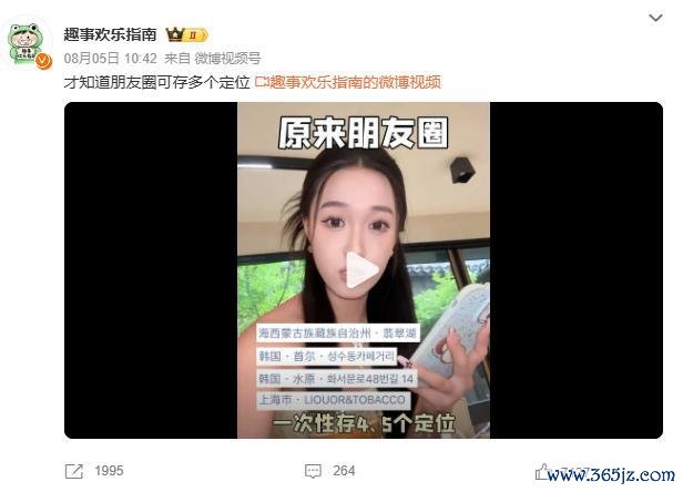 8 月 6 日,话题 # 才知谈一又友圈可存多个定位 # 登上微博热搜,信息起头是博主 @林月不 NG,她在视频中展现出定位学的"最新教案"——
