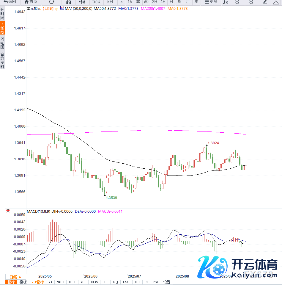 在本事面上,好意思元兑加元日线图露馅,汇价贯穿两日收阳,并稳步上破1.3750关隘,当今运行在1.3770隔壁。均线系统启动进取拐头,短期5日均线已对10日均线酿成解救,露馅出上活动能正在积攒。