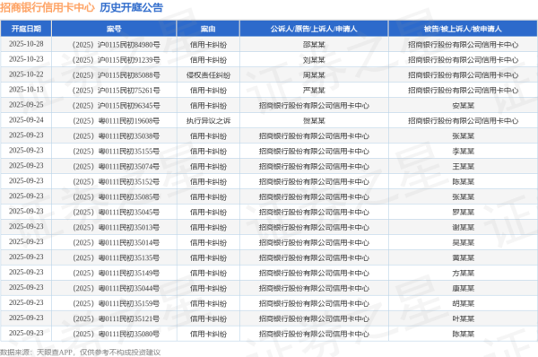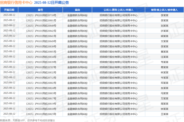 本站讯息,左证天眼查APP表示,近日公布了56则招商银行股份有限公司信用卡中心动作原告/上诉东说念主的开庭公告,案由为金融借债条约纠纷开云体育(中国)官方网站,开庭日历为2025年8月12日。谛视实质如下(前20条): 数据起原:天眼查APP 以上实质为本站据公开信息整理,由AI算法生成(网信算备310104345710301240019号),不组成投资提倡...